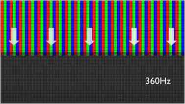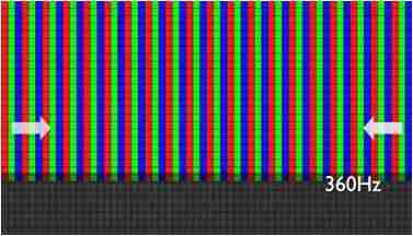 传统液晶驱动是从左到右单向进行,,,在画面更新速度愈来越愈快的情况下,,,,位于驱动线路末端的右下角区域,,画素的闸极来不及在短时间内获得足够电压,,,无法显示出正确的颜色资讯。。。。
